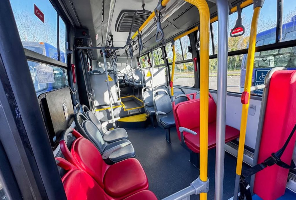 Los nuevos buses están equipados con piso bajo, aire acondicionado, entradas USB para cargar dispositivos móviles, pantallas informativas y un espacio designado para personas en situación de discapacidad.